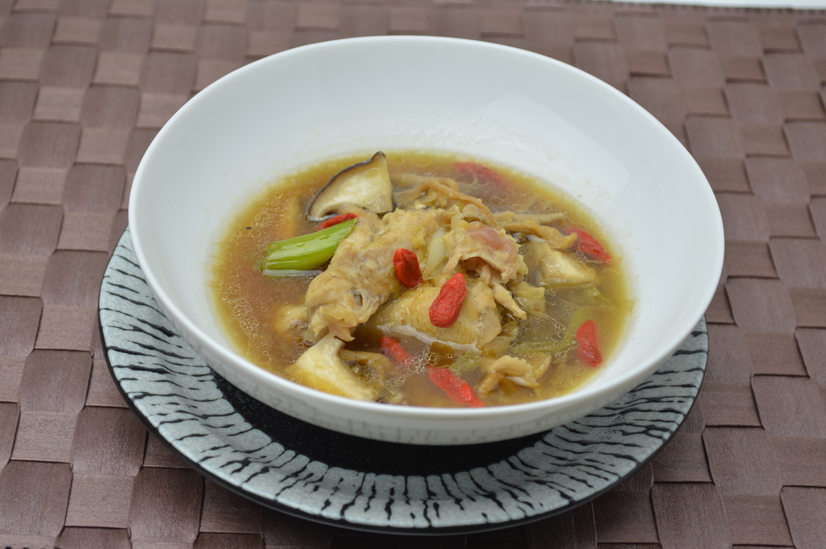 ⑤ 30分ほど煮込んだら(圧力鍋なら10分)、最後にごま油を回し入れ、クコの実を散らす。