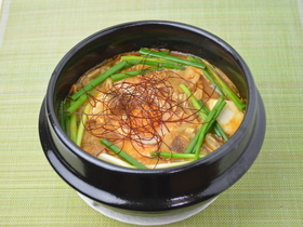 ⑤ 沸騰したら豆腐を入れ、味噌、コチュジャン、砂糖で
